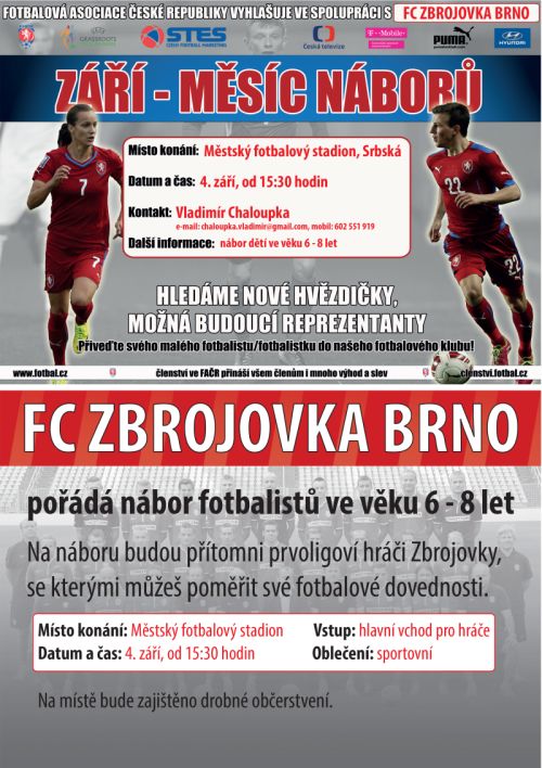 B r n o - Fotbalový klub pořádá v rámci akce "Září - měsíc náborů" nábor fotbalistů ve věku 6 až 8 let. Hlavním dnem akce bude 4. září.