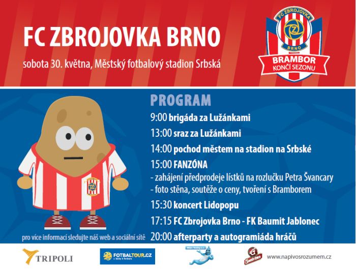B r n o - Oblíbili jste si Pana Brambora a minihru, ve které bylo možné získat lístky na utkání se Slavií? Pak vězte, že na poslední ligové utkání (30. května s Jabloncem) máme ve spolupráci se společností UNIFER nachystáno pokračování této hry.