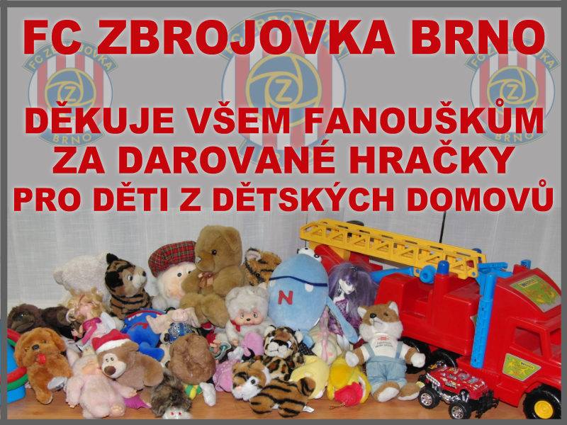 B r n o - Sobotní bitva s Příbramí nepřinesla jen tříbodový dárek do tabulky, při tradičním výběru hraček pro děti z dětských domovů byl klub doslova zavalen. Zbrojovka by touto cestou chtěla všem dárcům poděkovat.
