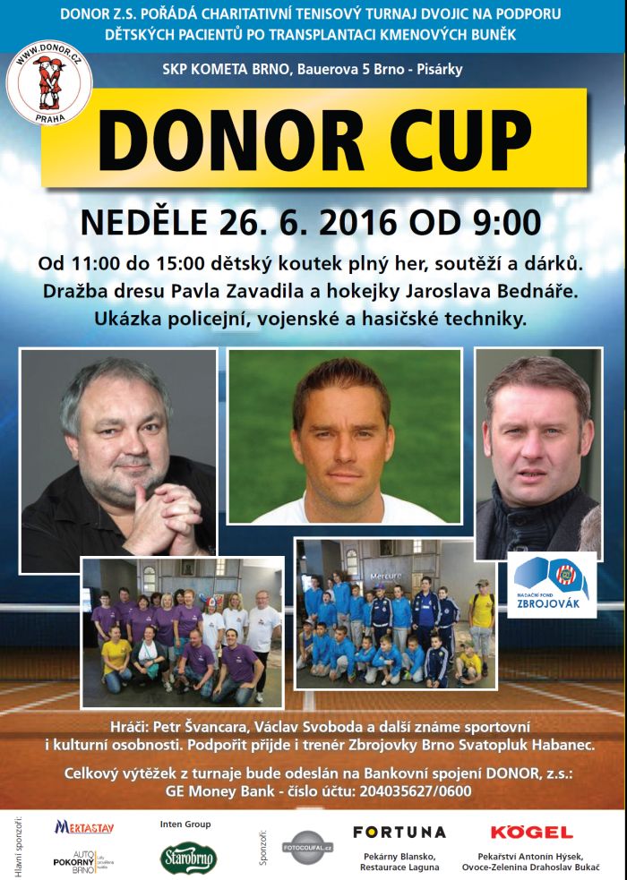 Donor Cup 2016 - charitativního tenisového turnaje se zúčastní i Zbrojováci