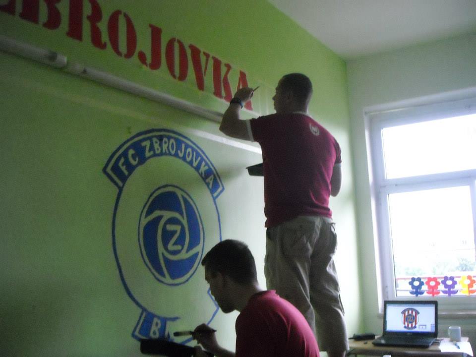 Na podzim minulý rok věnovali hráči Zbrojovky dětem do herny v dětské nemocnici nové hračky. Dnes tuto hernu fanoušci vyzdobili klubovými symboly. Malování fanouškům zabralo celkem šest hodin, ale nikdo tohoto času nelitoval a jen všichni doufají, že se nová výzdoba bude dětem líbit. Na závěr bychom chtěli poděkovat sestrám v nemocnici za malé pohoštění, kterého se nám dostalo.