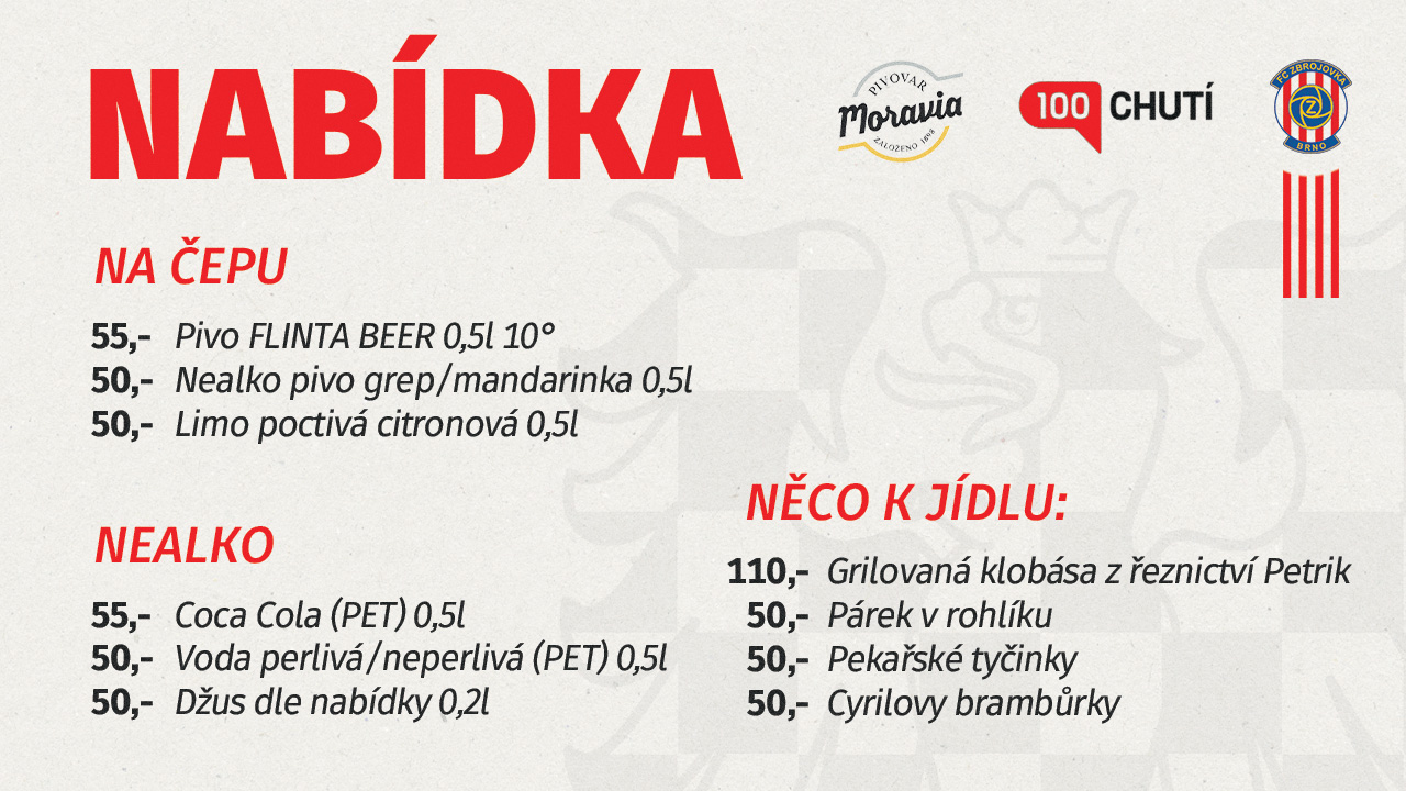 Novým partnerem klubu je Pivovar Moravia, který bude spolu s Tripoli zajišťovat občerstvení po celou sezonu. Tyto spolupráce vám přinesou kvalitní pivo, dobré jídlo a vylepšený zážitek z návštěvy fotbalu. Na stadionu bude v každém stánku možná platba kartou. Těšit se můžete také na roznos občerstvení během zápasu.
