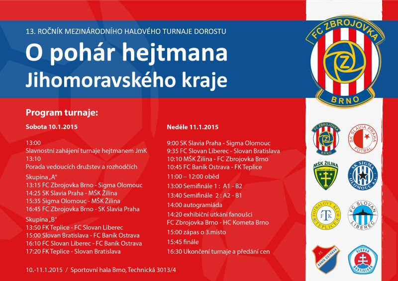 B r n o - S drobnou změnou, ale opět silně obsazen - v Brně se o víkendu koná již 13. ročník prestižního turnaje O pohár hejtmana Jihomoravského kraje. Zúčastní se jej tentokrát týmy kategorie U16, Zbrojovka nebude pochopitelně chybět.