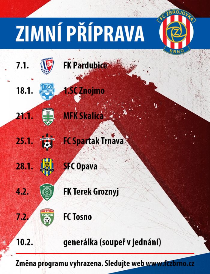B r n o - Program Zbrojovky pro zimní přípravu už je takřka kompletní, zbývá doluštit poslední tajenku - soupeře pro generálku na ligu. Jasné už je také to, že Brňané po třech letech změní na soustředění v Turecku hotel.