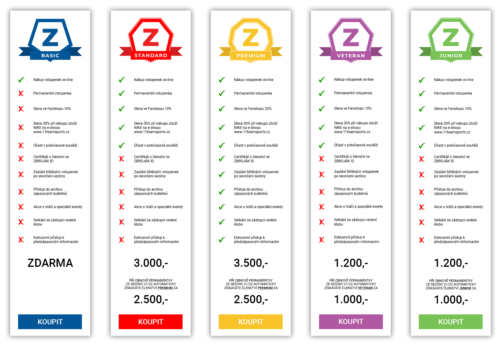 Další benefity – sleva pro nákup v klubovém Fanshopu (10 %), sleva pro nákup zboží NIKE v internetovém obchodu 11teamsports.cz (30 %).