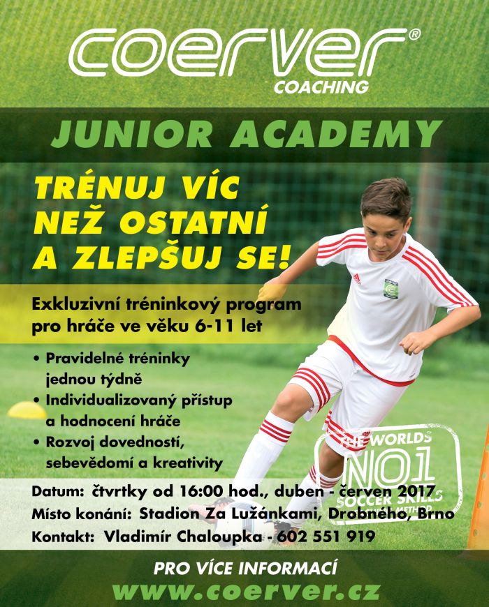 B r n o - Ve čtvrtek 6. dubna odstartuje na lužáneckém stadionu fotbalová Coerver akademie pro hráče ve věku od šesti do jedenácti let. Tréninky budou probíhat každý čtvrtek až do června.