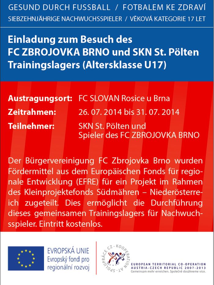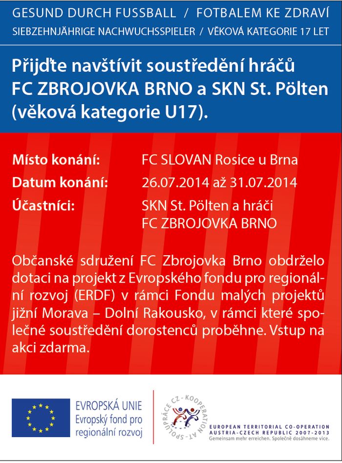 B r n o - Mladší dorost Zbrojovky (kategorie U17) absolvuje v rámci Fondu malých projektů společné soustředění s rakouským St. Pöltenem. To proběhne ve dnech 26. až 31. července v Rosicích u Brna.