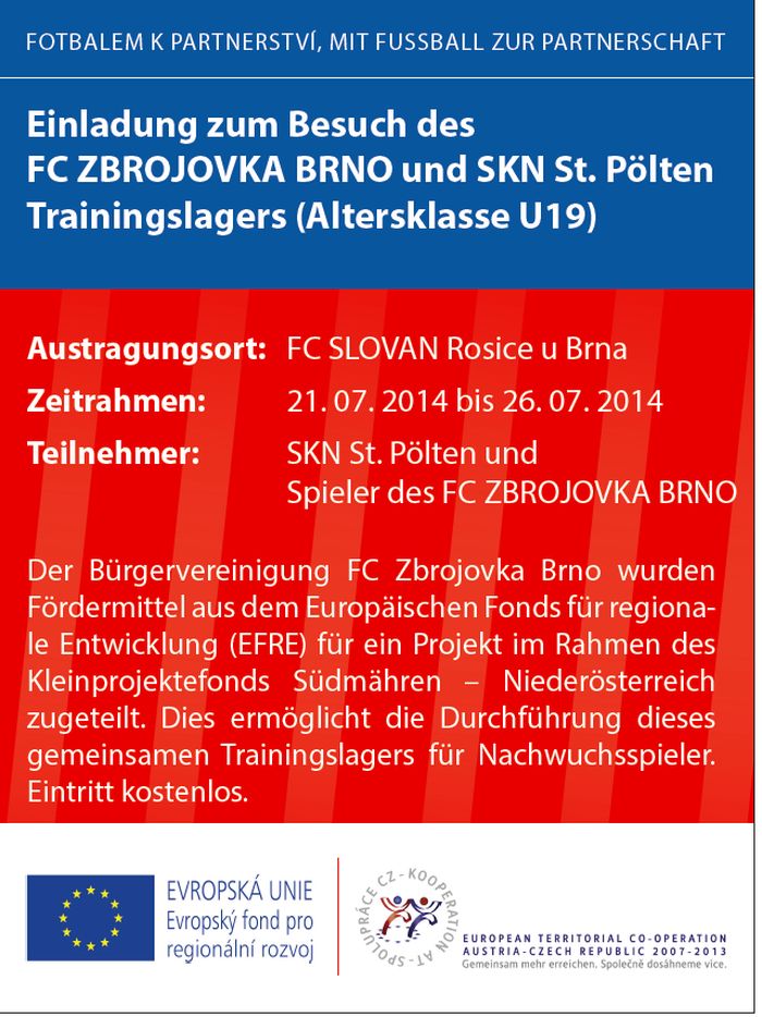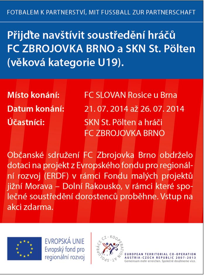 B r n o - Starší dorost Zbrojovky (kategorie U19) absolvuje v rámci Fondu malých projektů společné soustředění s rakouským St. Pöltenem. To proběhne ve dnech 21. až 26. července v Rosicích u Brna.