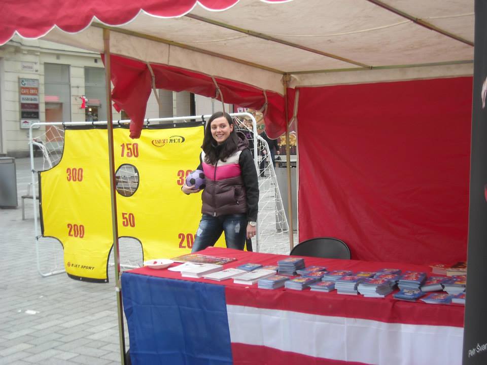 Zbrojovka měla samozřejmě také svůj stánek a děti si mohly vyzkoušet svou přesnost střelby na brance s plachtou s otvory. Nechyběly ani upomínkové předměty a pro sběratele jsme nachystali kartičky bývalých hráčů.