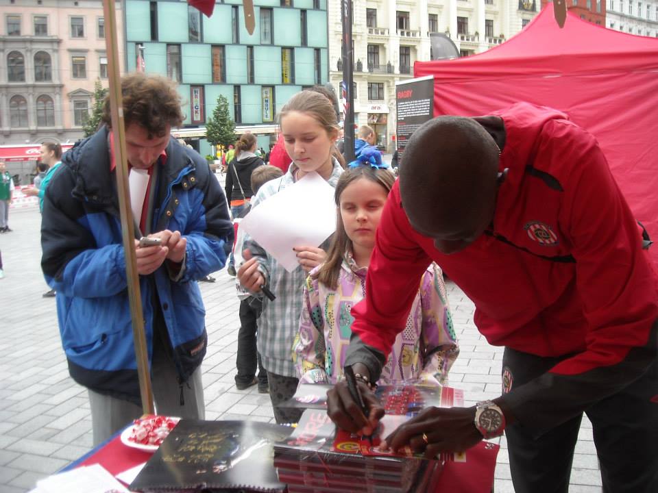Na plánovanou autogramiádu přišli za Zbrojovku Lamine Fall, Josip Šoljič, Václav Hladký a Martin Sus. Naši hráči přišli s hodinovým předstihem, aby si mohli s dětmi zasoutěžit u branky, vyfotit se se a rozdat podpisy. Celá akce se po oficiální autogramiádě zakončila koncertem skupiny Lidopop. Děti se mohly vyfotit v dresech klubů a fotky najdete zde.