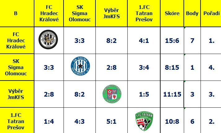 Slovan tak nakonec skupinu A ovládl a v semifinále jej čeká Prešov. Ten přetlačil v přímém boji o postup výběr Jihomoravského kraje. Ne snad fotbalovostí, ale spíše smrtící efektivitou. Moravané totiž neproměnili řadu obřích šancí, což Prešov trestal.