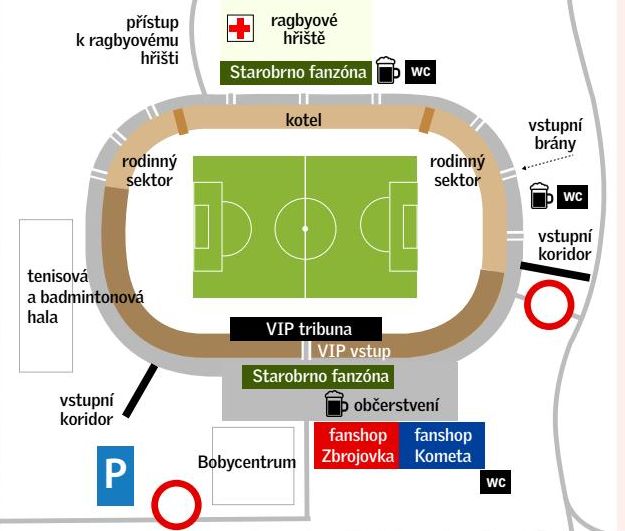 - otevření vstupních koridorů a zadní fanzóny na ragbyovém hřišti