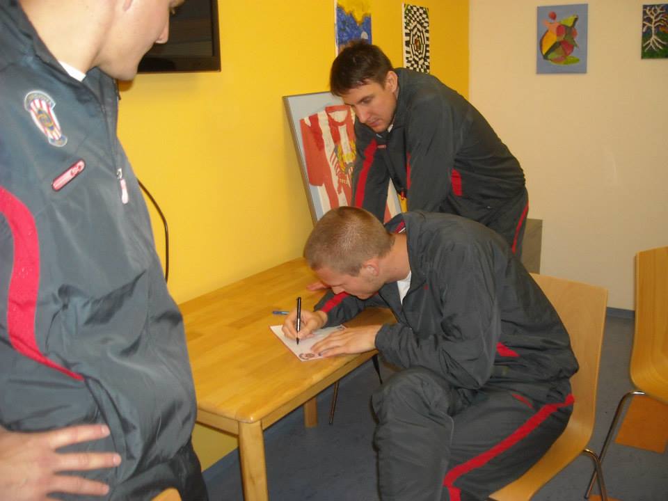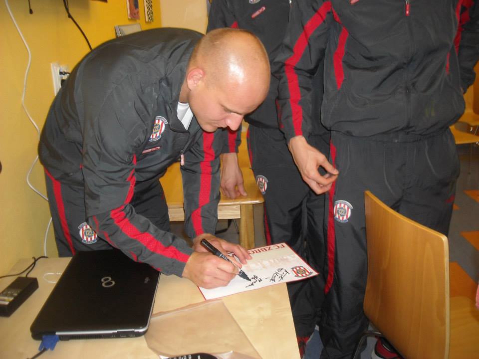 Vše začalo neformální besedou o sportovní kariéře, životě v DUM, plánech do budoucna a podobně. Po nezbytném focení a podpisech si hráči prohlédli pokoje a další prostory na budoucím oddělení Zbrojovky. Teď už jen budeme očekávat fotografie z finální výzdoby, do které se malířským uměním zapojí také členové oficiálního fanklubu Zbrojováci.