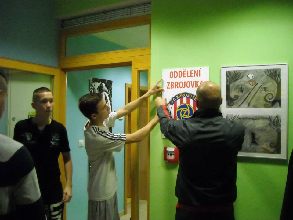 B r n o - Děti z Diagnostického ústavu mládeže na Veslařské pravidelně navštěvují zápasy Zbrojovky, pročež se zrodil nápad pojmenovat si podle fotbalového klubu jedno oddělení a také si ho patřičně vyzdobit. Zbrojováckou výzdobu přivezli hráči A mužstva – Pavel Mezlík, Martin Sus a Václav Hladký.